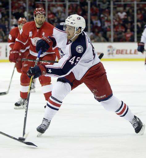 Columbus Blue Jackets center Lukas Sedlak (45), of the Czech Republic, takes a shot on goal against the Detroit Red Wings during the first period of an NHL hockey game Friday, Dec. 9, 2016, in Detroit. (AP Photo/Duane Burleson) The Associated Press