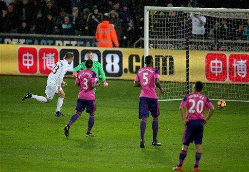 Bradley boost as Swansea wins 3-0 to exit EPL danger zone