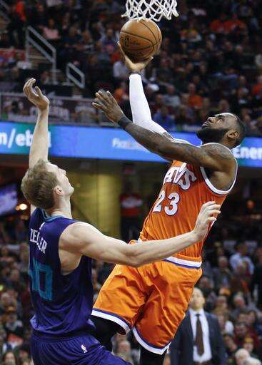 Cavaliers: J.R. Smith returned after missing two games with a hyperextended left knee and scored six points in 32 minutes. ... Kyrie Irving joined James and Mark Price as the only players in Cleveland history with 600 career 3-pointers. ... James is expected to get some rest and it's possible he could sit out one of next week's games against Memphis, but coach Tyronn Lue said he hasn't thought that far ahead. ... Cleveland improved to 41-10 at home against Charlotte. ... Olympic gold medal gymnast Simone Biles, an Ohio native, was introduced during a timeout in the first quarter. ... F Channing Frye missed his second straight game to attend his father's funeral.
