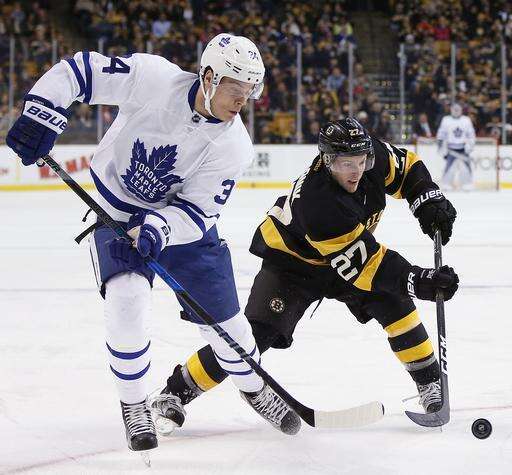 NOTES: The Bruins recalled forwards Noel Acciari and Danton Heinen from Providence of the AHL before the game and assigned F Anton Blidh to the AHL. ... The first game between the two clubs was just over 92 years ago: Dec. 3, 1924, when the Toronto St. Pats beat the Bruins, 5-3. ... Toronto won the only other meeting so far this season, 4-1 at home on October 15.