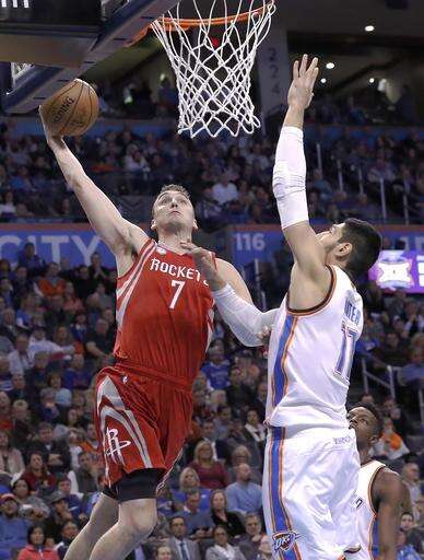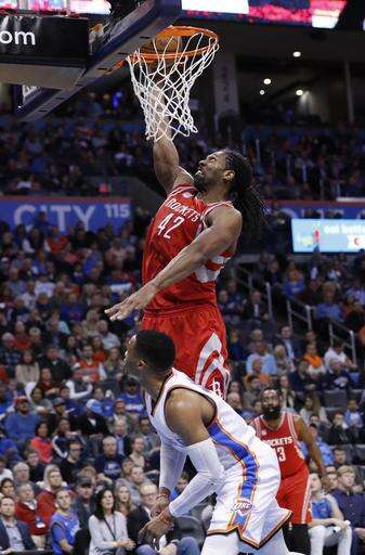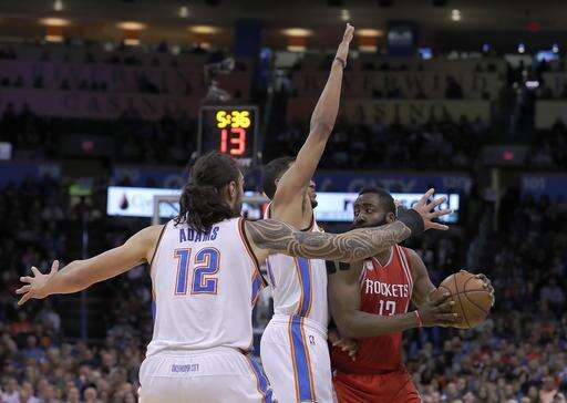 Thunder: Committed seven turnovers in the first quarter that led to 10 Rockets points. ... Thunder coach Billy Donovan was called for a technical foul in the second quarter after a no-call against Beverley. ... Steven Adams' 17 points in the first half were a career high for a half. He finished with a career-best 24.