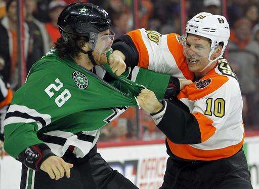 NOTES: The Flyers held a moment of silence in the pregame for former scout and coach Bill Dineen, who died Saturday at 84. ... The teams will wrap up their two-game season series next Saturday in Dallas. ... Schenn and Stephen Johns fought to a draw in the second period though Schenn received a cut on his forehead.