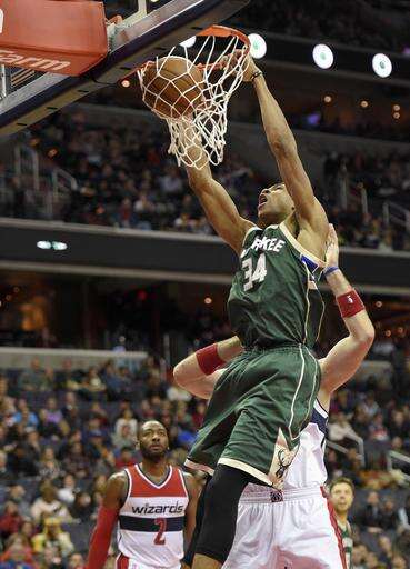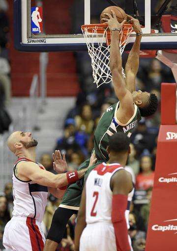 Antetokounmpo's two free throws gave the Bucks a 100-95 lead with 4:28 left, but the Wizards rallied while the Bucks went cold.