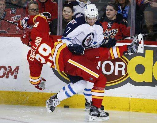 NOTES: Calgary's Kris Versteeg (upper body) missed his second consecutive game but is likely to return this week. ... Jets rookie Josh Morrissey played as a pro in his hometown for the first time in his career. ... The home team has won the last six meetings between these teams. ... Calgary's power play has converted at least once in five straight games. ... With a pair of assists, Calgary forward Johnny Gaudreau has points in all four games since returning from a broken finger that sidelined him for 10 games. ... Winnipeg has been outscored 43-20 in the second period this season.