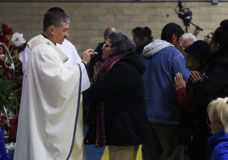 Cardinal Blase Cupich gives communion Monday as he celebrates Mass at the annual feast of Our Lady of Guadalupe in Des Plaines. More than 200,000 worshippers were expected to attend the 36-hour event.
