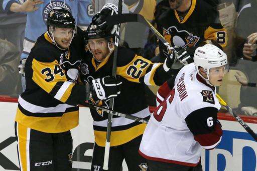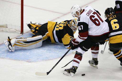 NOTES: The Penguins have outscored opponents 36-14 during their winning streak. The Coyotes have scored 62 goals on the season (29 games). ... Louis Domingue filled in for Smith and made nine saves on 12 shots. ... Pittsburgh went 2 for 7 on the power play. The Coyotes were 0 for 3 with the man advantage. ... Arizona scratched Ds Connor Murphy and Kevin Connauton and F Anthony Duclair. ... Pittsburgh scratched D Steve Olesky and C Eric Fehr.