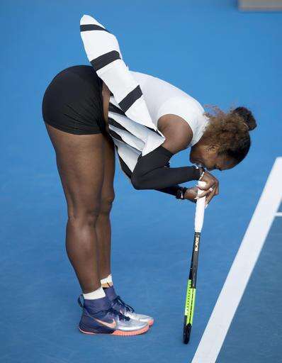 United States' Serena Williams rests on her racket in frustration during her second round loss to compatriot Madison Brengle at the ASB Classic tennis tournament in Auckland, New Zealand, Wednesday, Jan. 4, 2017. Tournament top seed Williams went down 6-4, 6-7 (3), 6-4 to the 72nd-ranked Brengle. (Dean Purcell/New Zealand Herald via AP) The Associated Press