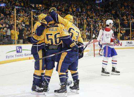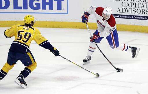 Notes: This was the 3,300th road game in Montreal's history in the NHA and NHL combined. ... Montreal left wing Paul Byron played his 100th career game with the Canadiens. ... Nashville has gotten at least a point in 10 straight games against the Canadiens. ... Montreal improved to 4-6 in overtime. Nashville dropped to 1-7.