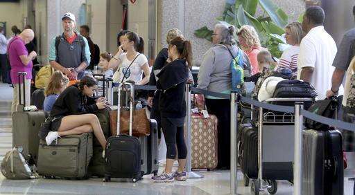 Passengers wait in the departure line at terminal 2 Saturday, Jan. 7, 2017, after the airport re-opened. Investigators continued their work downstairs in the baggage area of terminal 2 at Ft. Lauderdale-Hollywood International Airport the day after a shooting. (Mike Stocker /South Florida Sun-Sentinel via AP) The Associated Press
