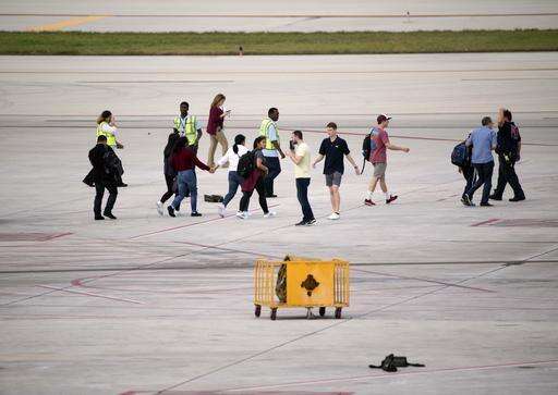 People are shown on the tarmac at Fort Lauderdale–Hollywood International Airport, Friday, Jan. 6, 2017, in Fort Lauderdale, Fla. A gunman opened fire in the baggage claim area at the airport Friday, killing several people and wounding others before being taken into custody in an attack that sent panicked passengers running out of the terminal and onto the tarmac, authorities said. (AP Photo/Wilfredo Lee) The Associated Press