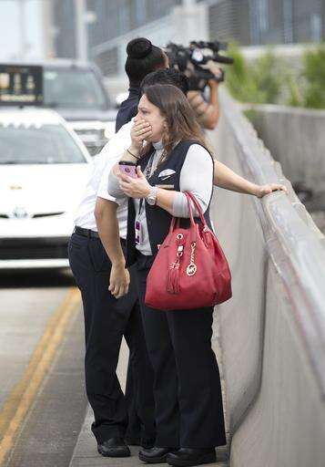 People react at Fort Lauderdale–Hollywood International Airport, Friday, Jan. 6, 2017, in Fort Lauderdale, Fla. A gunman opened fire in the baggage claim area at the airport Friday, killing several people and wounding others before being taken into custody in an attack that sent panicked passengers running out of the terminal and onto the tarmac, authorities said. (AP Photo/Wilfredo Lee) The Associated Press