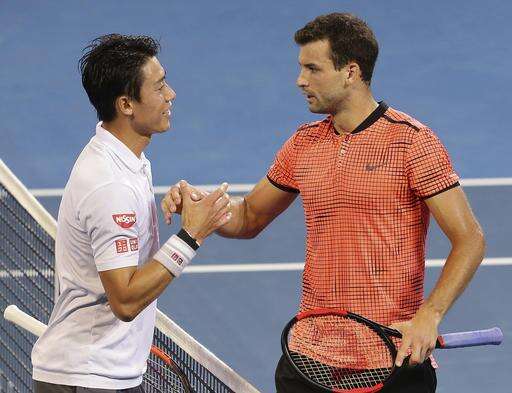 Grigor Dimitrov of Bulgaria, right, shakes hands with Kei Nishikori of Japan after beating him 6-2, 2-6, 6-3, in the final match at the Brisbane International tennis tournament in Brisbane, Australia, Sunday, Jan. 8, 2017. (AP Photo/Tertius Pickard) The Associated Press