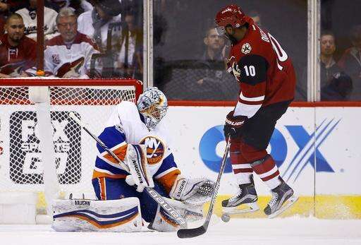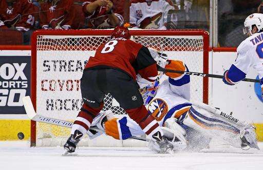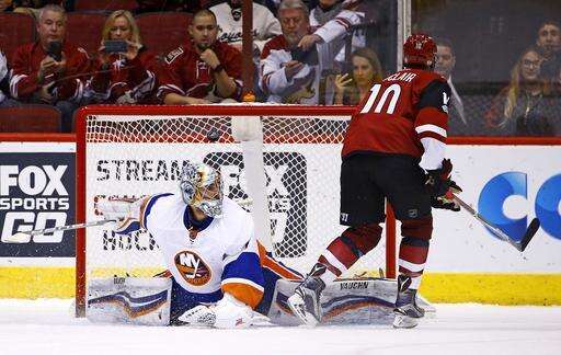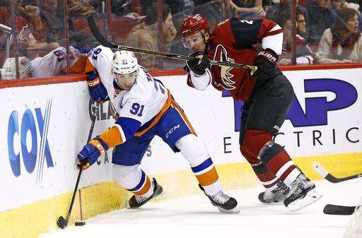 NOTES: Boychuk played in his 500th career NHL game. ... Islanders D Travis Hamonic left the ice in the second period after a knee-on-knee collision, but returned before the period was over. ... F Stephen Gionta, D Adam Pelech and F Anthony Beauvillier were scratched for New York. ... Arizona recalled F Laurent Dauphin from Tucson of the AHL in time for Saturday's game. Dauphin had appeared in 20 games this season for the Coyotes. ... D Anthony DeAngelo served the last game of his three-game suspension for physical abuse of an official. Also scratched were C Martin Hanzal (lower-body injury) and F Jordan Martinook (upper-body injury). Both are considered day-to-day. ... Tippett said F Max Domi will skate Sunday morning as he works his way back from a broken hand. Domi has been out for almost a month.