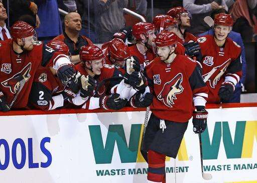 GLENDALE, Ariz. (AP) - The team with the fewest wins in the NHL picked up a much-needed one Saturday night.