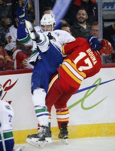 NOTES: Horvat extended his point streak to seven games (three goals, five assists). ... One of the Canucks' defensemen was Alex Biega, who had been scratched the past six games. ... Anton Rodin dressed for Vancouver but didn't play a shift. ... Calgary improved to 16-0-1 when leading after two periods. ... Canucks RW Alex Burrows returned after missing Friday's game due to an illness.