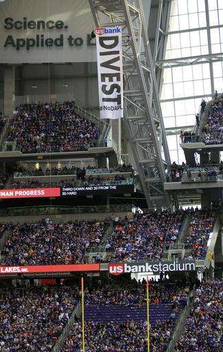 The protest actions that have popped up, other than the banner drop at a Minnesota Vikings game, include a demonstration at the Jan. 2 Rose Parade in California, bank protests from New York to California and protests of other pipelines in Texas, Florida and Louisiana.