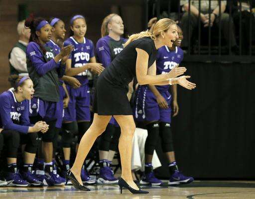 TCU head coach Raegan Pebley motivates her team in the second half of an NCAA college basketball game against Baylor on Wednesday, Jan. 11, 2017, in Waco, Texas. (AP Photo/Tony Gutierrez) The Associated Press