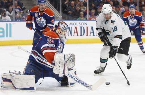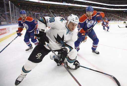 Boedker then scored twice 6 1/2 minutes apart in the second to give San Jose a three-goal lead. Boedker, who came in with three goals on the season, doubled that total at 8:55 with a tip-in from in front to make it 4-1. It was his second hat trick against the Oilers.