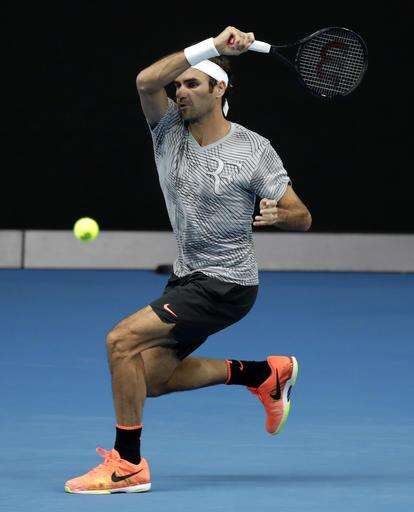 Switzerland's Roger Federer makes a forehand return during a practice session ahead of the Australian Open tennis championships in Melbourne, Australia, Sunday, Jan. 15, 2017. (AP Photo/Kin Cheung ) The Associated Press