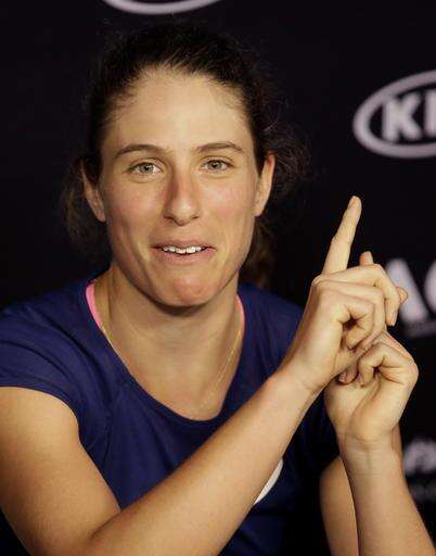Britain's Johanna Konta gestures during a press conference ahead of the Australian Open tennis championships in Melbourne, Australia, Sunday, Jan. 15, 2017. (AP Photo/Dita Alangkara) The Associated Press