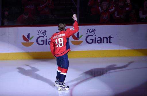 Washington Capitals center Nicklas Backstrom (19), of Sweden, waves to the crowd before an NHL hockey game against the Philadelphia Flyers, Sunday, Jan. 15, 2017, in Washington. Backstrom was honored in a pregame ceremony for being the first player in franchise history to record 500 assists. (AP Photo/Nick Wass) The Associated Press