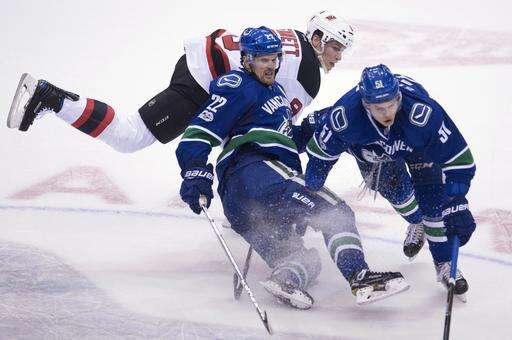 NOTES: Henrik Sedin now has five goals and 10 assists in 19 career games against New Jersey. ... Eriksson has eight goals and six assists in 18 games vs. the Devils. ... New Jersey, which won the teams' first meeting 3-2 at home on Dec. 6, swept the season series. ... Schneider has given up just 11 goals on 183 shots (.934 save percentage) over his last seven starts.