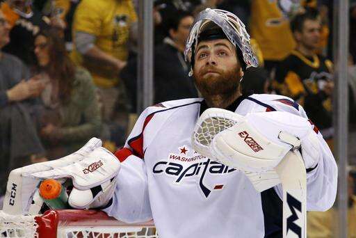 Washington Capitals goalie Braden Holtby takes a time out after allowing a goal to Pittsburgh Penguins' Evgeni Malkin during the second period of an NHL hockey game in Pittsburgh, Monday, Jan. 16, 2017. (AP Photo/Gene J. Puskar) The Associated Press