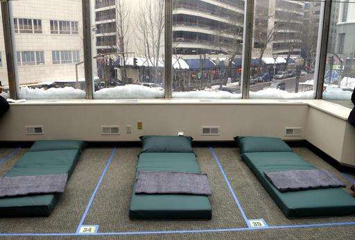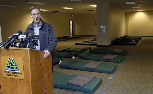 Beds in a new homeless shelter, slated to open later in the evening, are show in Portland, Ore., Tuesday, Jan. 17, 2017. A stillborn infant was found with his homeless mother at a Portland bus stop in the cold earlier this month and,while the infant's death was not blamed on the cold, it has drawn more attention to an unusually harsh winter that has led to several exposure deaths among the city's homeless. (AP Photo/Don Ryan) The Associated Press