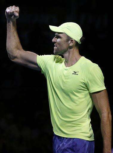 Croatia's Ivo Karlovic celebrates after defeating Argentina's Horacio Zeballos in their first round match at the Australian Open tennis championships in Melbourne, Australia, Tuesday, Jan. 17, 2017. (AP Photo/Aaron Favila) The Associated Press