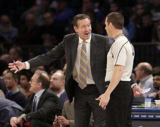 New York Knicks head coach Jeff Hornacek argues with a referee during the first half of the NBA basketball game against the Atlanta Hawks, Monday, Jan. 16, 2017 in New York. (AP Photo/Seth Wenig) The Associated Press