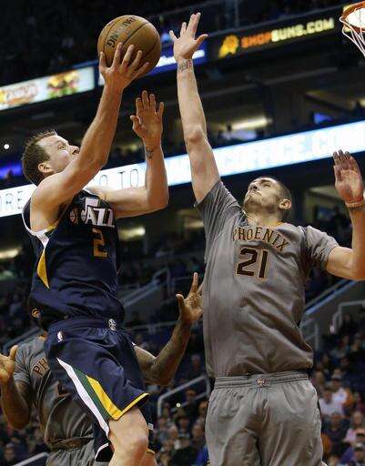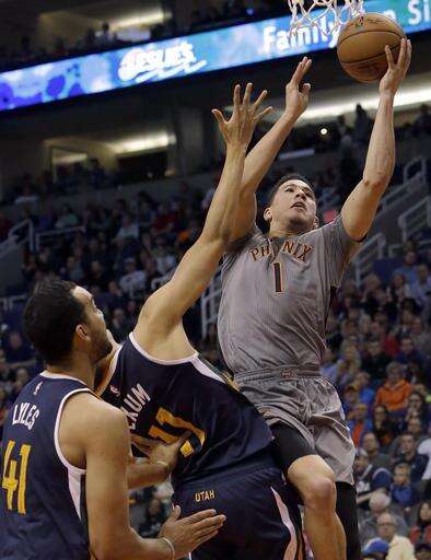 Jazz: Utah swept the season series from Phoenix for the second year in a row. ... G Rodney Hood sat out with a right knee hyperextension/bone bruise. ... The Jazz last lost to Phoenix on April 4, 2015. ... Hayward was 4-of-13 shooting and had only six points in the final three quarters. ... Hayward was chosen Western Conference player of the week over Booker for last week.
