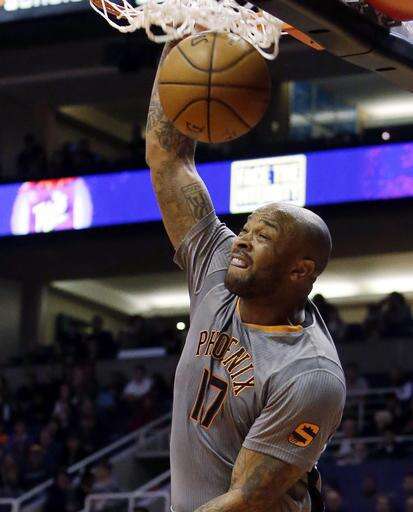 Phoenix Suns forward P.J. Tucker dunks against the Utah Jazz in the first quarter during an NBA basketball game, Monday, Jan. 16, 2017, in Phoenix. (AP Photo/Rick Scuteri) The Associated Press