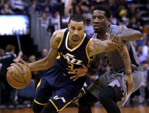 Utah Jazz guard George Hill (3) drives past Phoenix Suns guard Eric Bledsoe in the third quarter of an NBA basketball game, Monday, Jan. 16, 2017, in Phoenix. (AP Photo/Rick Scuteri) The Associated Press