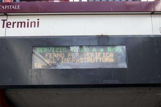 A sign on Rome's subway system at Termini train station reads that the subway lines A and B are closed to very their infrastructure after three earthquakes hit central Italy in the space of an hour, shaking the same region that suffered a series of deadly quakes last year, in Rome, Wednesday, Jan. 18, 2017. (Massimo Percossi/ANSA via AP)