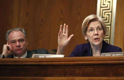 Sen. Elizabeth Warren, D-Mass., questions Education Secretary-designate Betsy DeVos on Capitol Hill in Washington, Tuesday, Jan. 17, 2017, at DeVos' confirmation hearing before the Senate Health, Education, Labor and Pensions Committee, as Sen. Tim Kaine, D-Va., listens. (AP Photo/Carolyn Kaster) The Associated Press