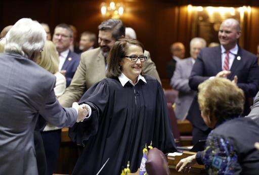 Indiana Chief Justice Loretta H. Rush greets legislators as she arrives to deliver her State of the Judiciary address to a joint session of the legislature at the Statehouse in Indianapolis, Wednesday, Jan. 18, 2017. Rucker will retire this year after 18 years on the court. (AP Photo/Michael Conroy) The Associated Press