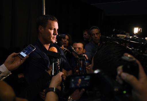 Los Angeles Chargers quarterback Phillip Rivers, left, speaks to the media after an NFL football news conference to introduce the Los Angeles Chargers to the Los Angeles area, in Inglewood, Calif., Wednesday, Jan. 18, 2017. (AP Photo/Kelvin Kuo) The Associated Press