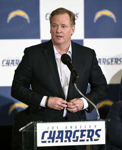 NFL commissioner Roger Goodell speaks to the crowd to introduce the Los Angeles Chargers to the Los Angeles area during an NFL football news conference in Inglewood, Calif., Wednesday, Jan. 18, 2017. (AP Photo/Kelvin Kuo) The Associated Press