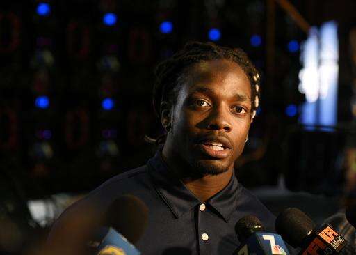 Los Angeles Chargers running back Melvin Gordon speaks to the media after an NFL football news conference to introduce the Los Angeles Chargers to the Los Angeles area in Inglewood, Calif., Wednesday, Jan. 18, 2017. (AP Photo/Kelvin Kuo) The Associated Press