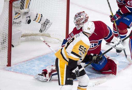 Conor Sheary got away with tripping defenseman Jeff Petry behind the Montreal net and fed the puck to Maatta at the point for a low shot that went through Price's pads 15:36 into the third frame.