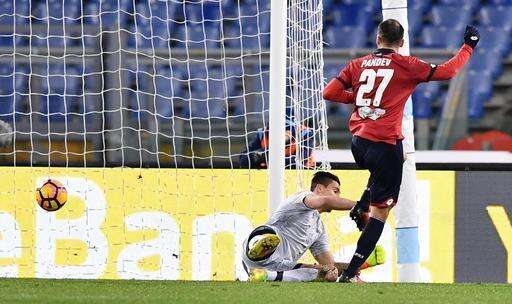 Genoa's Goran Pandev scores during the Italian Cup, Round of 16 soccer match between Lazio and Genoa at the Rome Olympic stadium Wednesday, Jan. 18, 2017. (Ettore Ferrari/ANSA via AP)