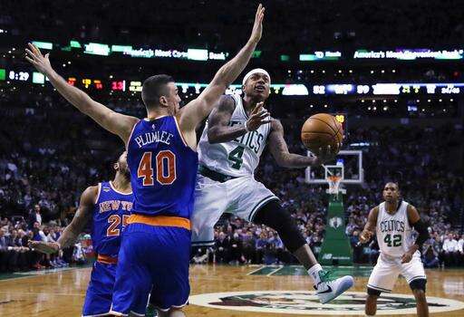 Boston closed to 97-96 on Jaylen Brown's two free throws with just under eight minutes to play, but Justin Holiday and Courtney Lee nailed 3-pointers 29 seconds apart, pushing New York's lead back to seven.