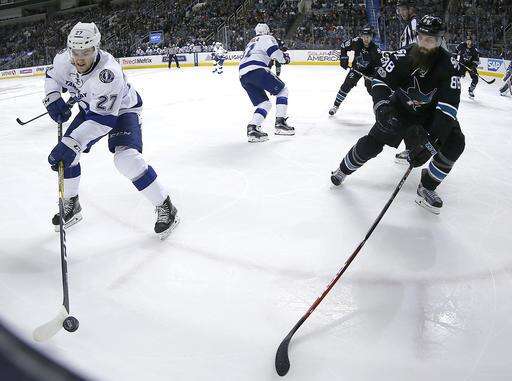 NOTES: Lightning D Victor Hedman missed his third straight game due to illness. ... The Sharks placed Micheal Healy on injured reserve and recalled Joonas Donski from IR. ... Lightning C Brian Boyle has three points in the five games since returning from injury. ... Drouin has points in nine of his last 11 games. ... Couture has goals in three of his last five games.