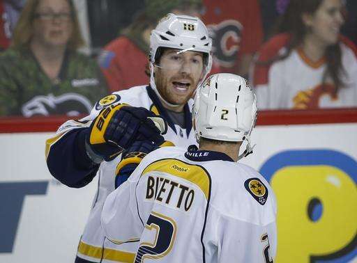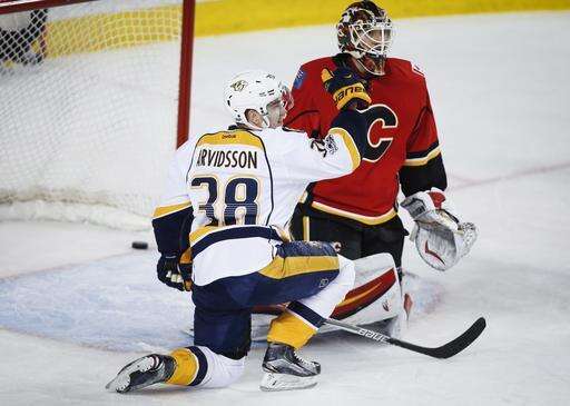 CALGARY, Alberta (AP) - A four-goal lead in the third period nearly wasn't enough for the Nashville Predators.