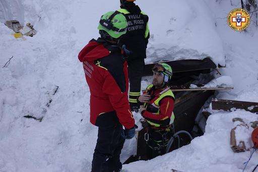 Two other people escaped the devastation just before the avalanche struck, including Giampiero Parete, a chef vacationing with his family who first sounded the alarm by calling his boss. He was reunited with his wife and two children Saturday after they were among the first to be located and extracted from the debris. "Thank you everyone from my heart," Parete wrote on Facebook. "Big hugs."