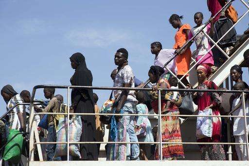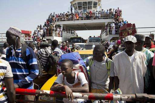 A ferry bringing back people who fled arrives at the port in Banjul, Gambia as it reopens Saturday Jan. 21, 2017. life slowly returns to the Gambian capital as Gambia's defeated leader Yahya Jammeh announced early Saturday he has decided to relinquish power, after hours of last-ditch talks with regional leaders and the threat by a regional military force to make him leave.AP Photo/Jerome Delay)