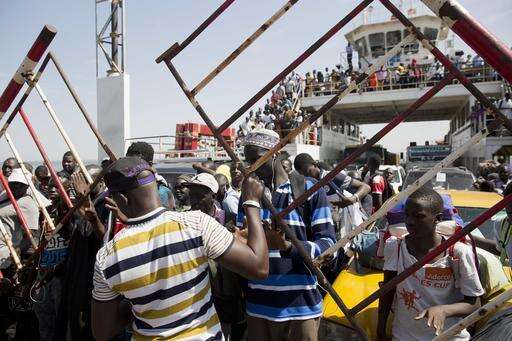 People arrive at the port to take the ferry in Banjul, Gambia as it reopens Saturday Jan. 21, 2017. life slowly returns to the Gambian capital as Gambia's defeated leader Yahya Jammeh announced early Saturday he has decided to relinquish power, after hours of last-ditch talks with regional leaders and the threat by a regional military force to make him leave.AP Photo/Jerome Delay)