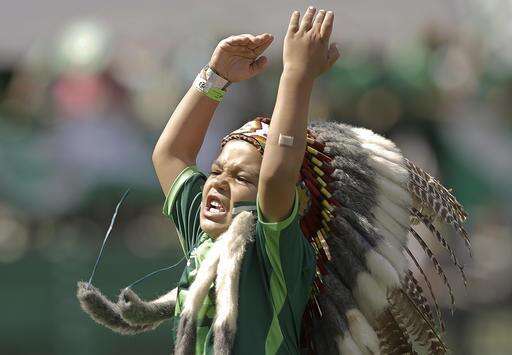 A boy dressed as the Chapecoense mascot cheers during a Sudamericana trophy award ceremony prior to a friendly match against Palmeiras, in Chapeco, Brazil, Saturday, Jan. 21, 2017. Almost two months after the air tragedy that killed 71 people, including 19 team players, Chapecoense plays at its Arena Conda stadium against the 2016 Brazilian champion Palmeiras. (AP Photo/Andre Penner)