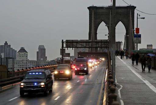 The motorcade with Joaquin "El Chapo" Guzman leaves Brooklyn Federal Court on Friday, Jan. 20, 2017 in New York. Guzman is expected to appear in federal court in New York today. He was brought to the United States from Mexico Thursday night to face drug trafficking and other charges. (AP Photo/Mark Lennihan) The Associated Press