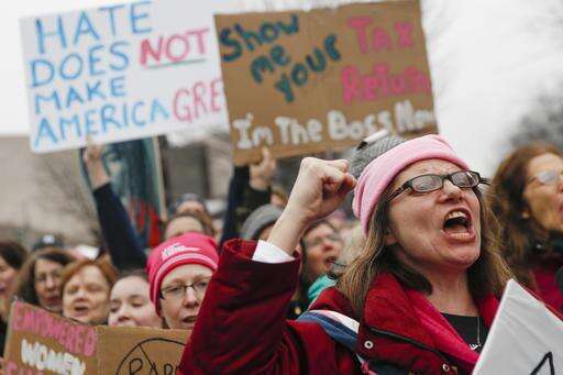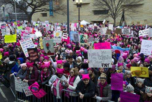 Look to the National Mall in Washington for lots of bright pink hats and signs that say "less fear more love" and "the future is female."